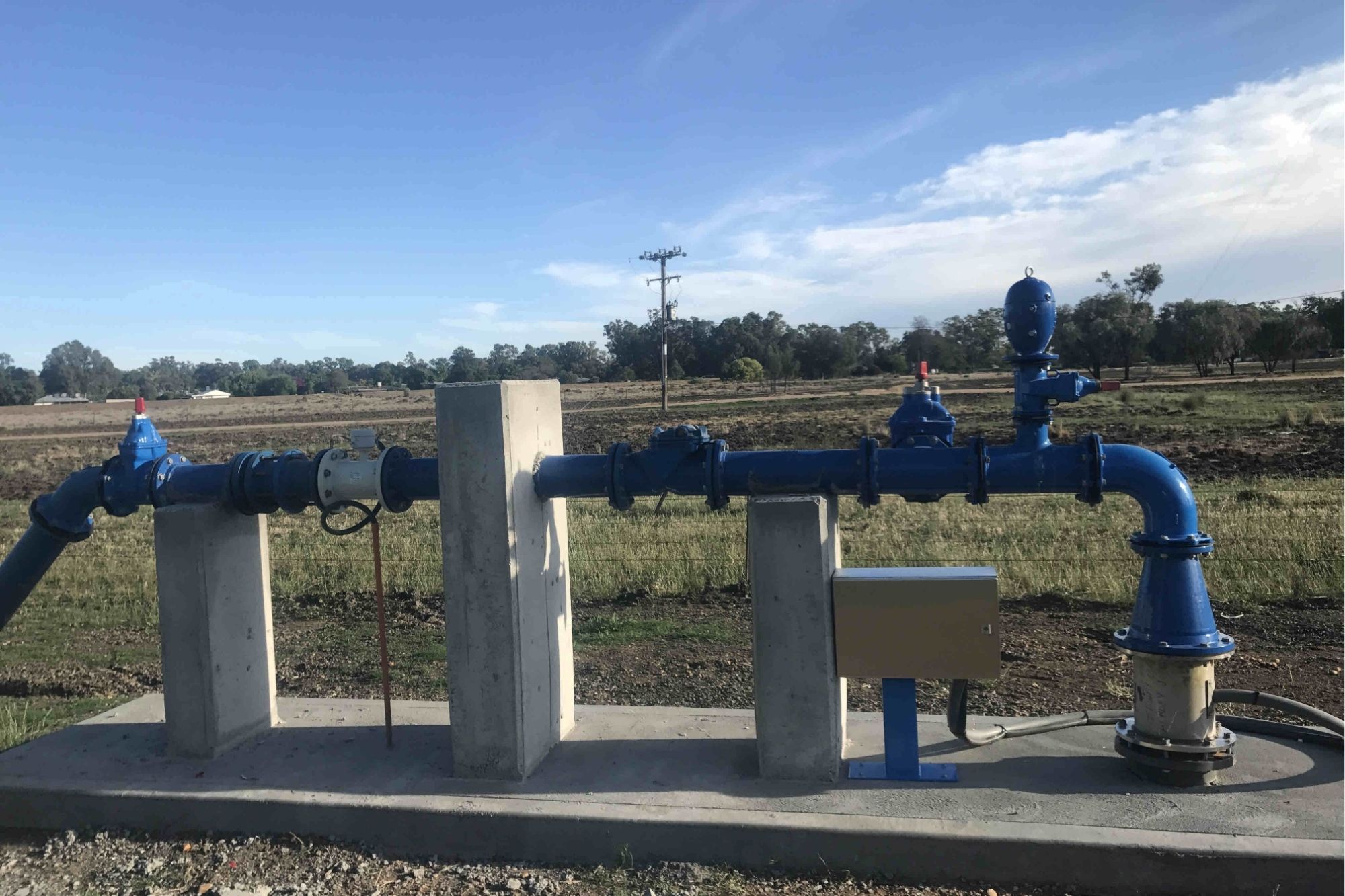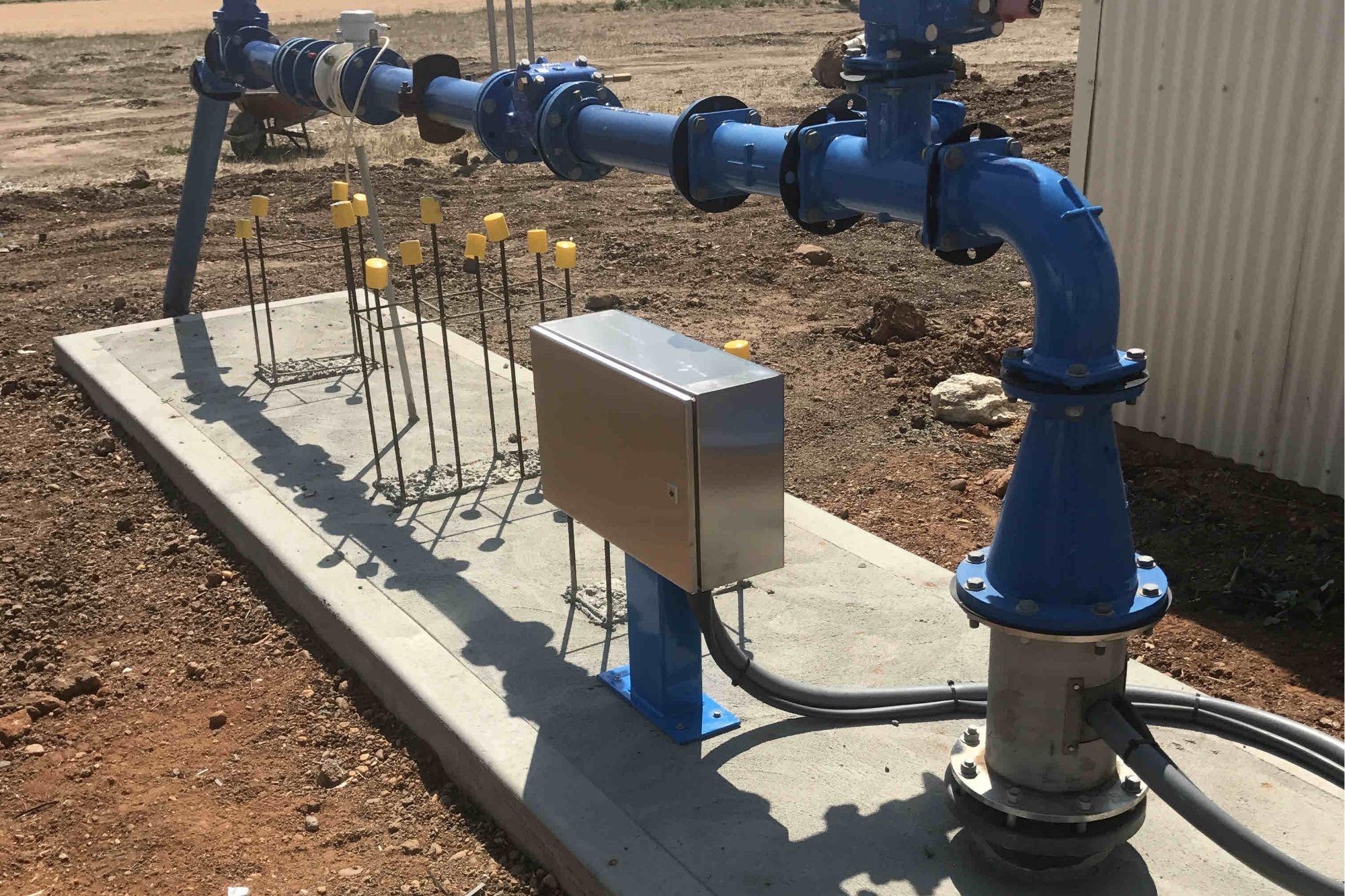 - Hydraulic Manifold arrangement at each bore head including Water meter, Valves, and all associated connection fittings to link to the existing adjacent mainline.
