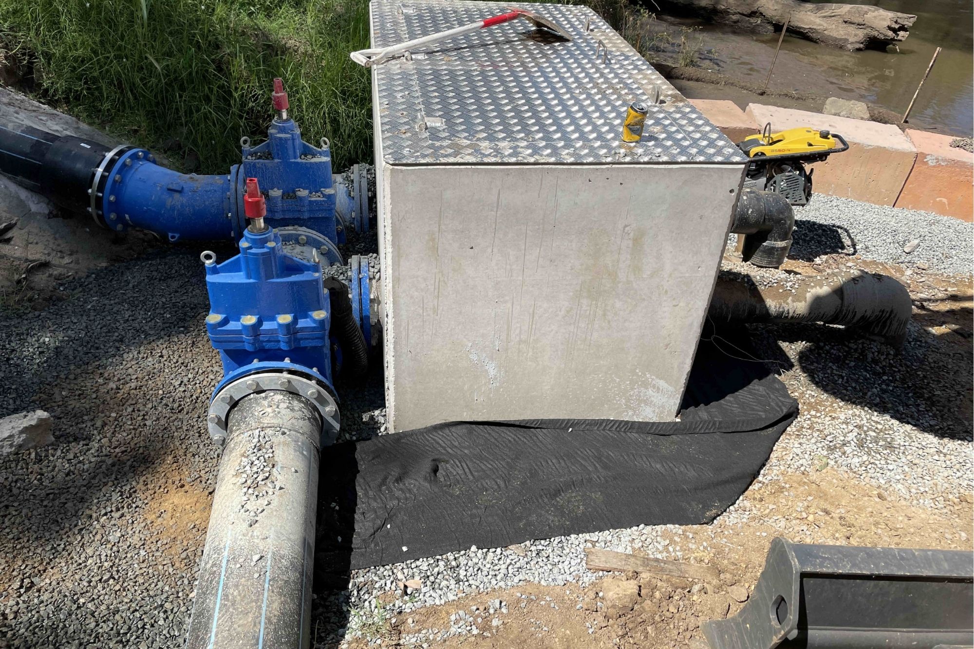 - Gate Valves, Check Valves, and all associated connection fittings to link all the 3 pumps to the existing holding tank via 3 independent 315mm poly discharge lines.