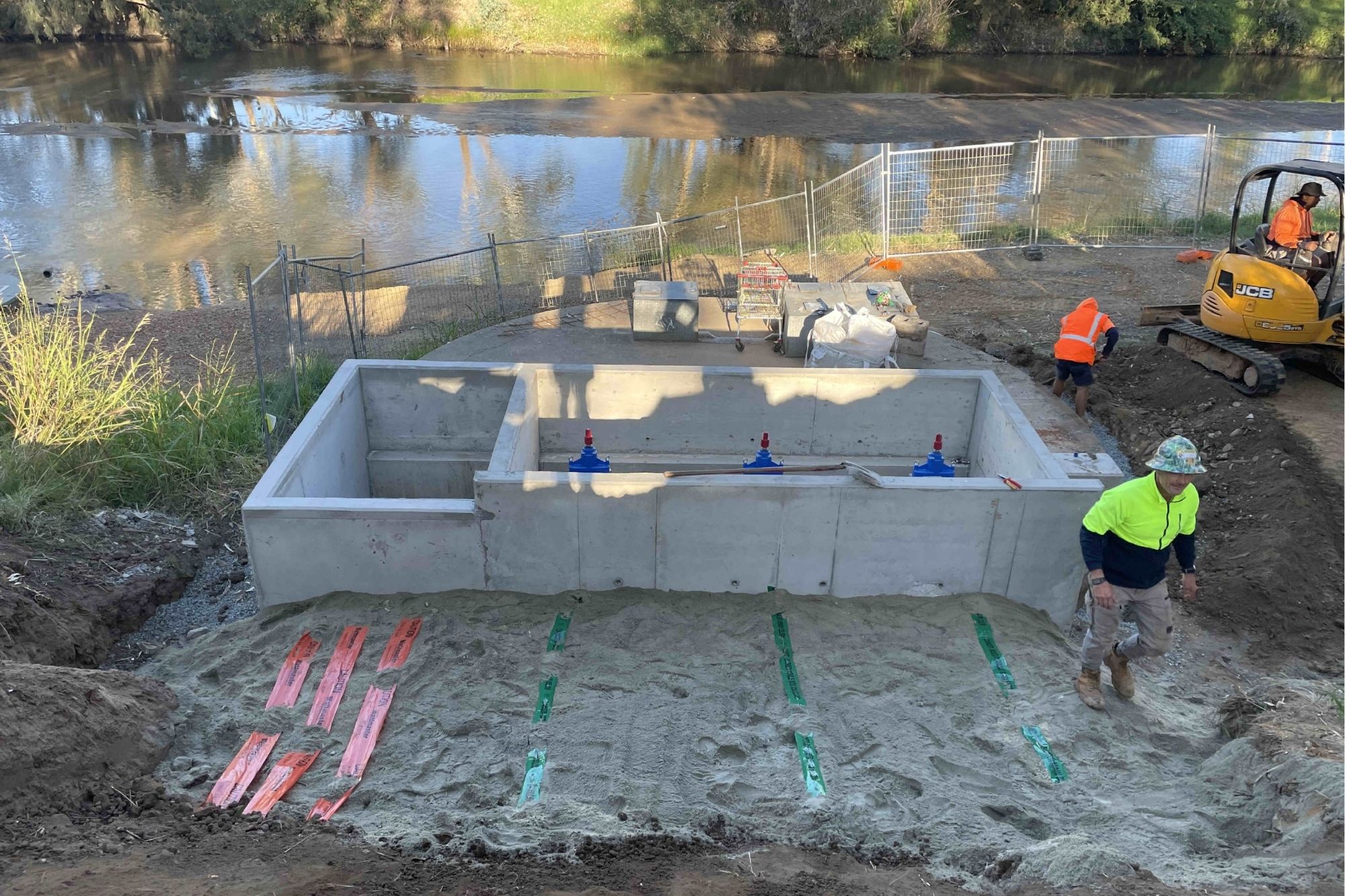 Cowra Shire Council required a Design and Construct upgrade of the existing Lachlan River Low lift pump station which houses three pumps in a Wet Well connected to an internal manifold that directs water via a pipe out of the well up to a higher lift pump station holding tank ,the existing pumps are well past there life span with one pump not functioning at all and the second pump constantly breaking down this leaves the town very vulnerable to supply failure, as part of the upgrade council has requested that the river inlet pump station below the Low Lift Wet Well be upgraded at the same time as a permeant back up to the existing Low lift pump station as part of this project this would give council a fully functioning system while the major upgrade to the Low Lift Pump Station was carried out and would eventually supply council with 2 individual supply systems from the Lachlan river. This project aims to secure the water supply delivered from the low lift pump station to the high lift pump station and allow the flow rate to be scaled down and up with variable speed drive pumps with flow fluctuation from 30l/s up to 280l/s and to create redundancy with at least one extra pump from the low lift pump station to the high lift pump station as well as the two river lift pumps as back up.