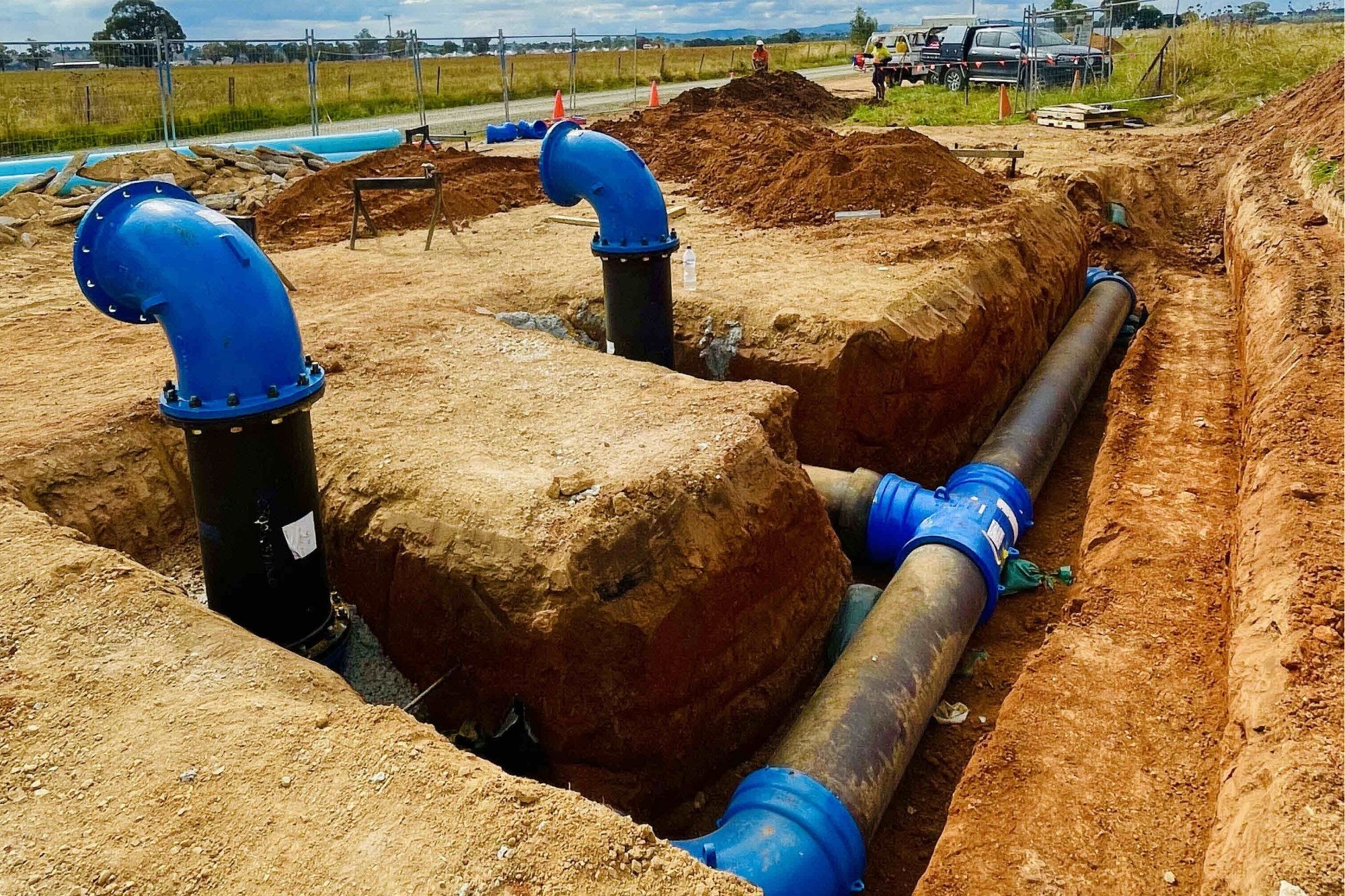 - Gate Valves, Check Valves, and all associated connection fittings to link both pumps to the existing holding tank and 375mm trunk main.