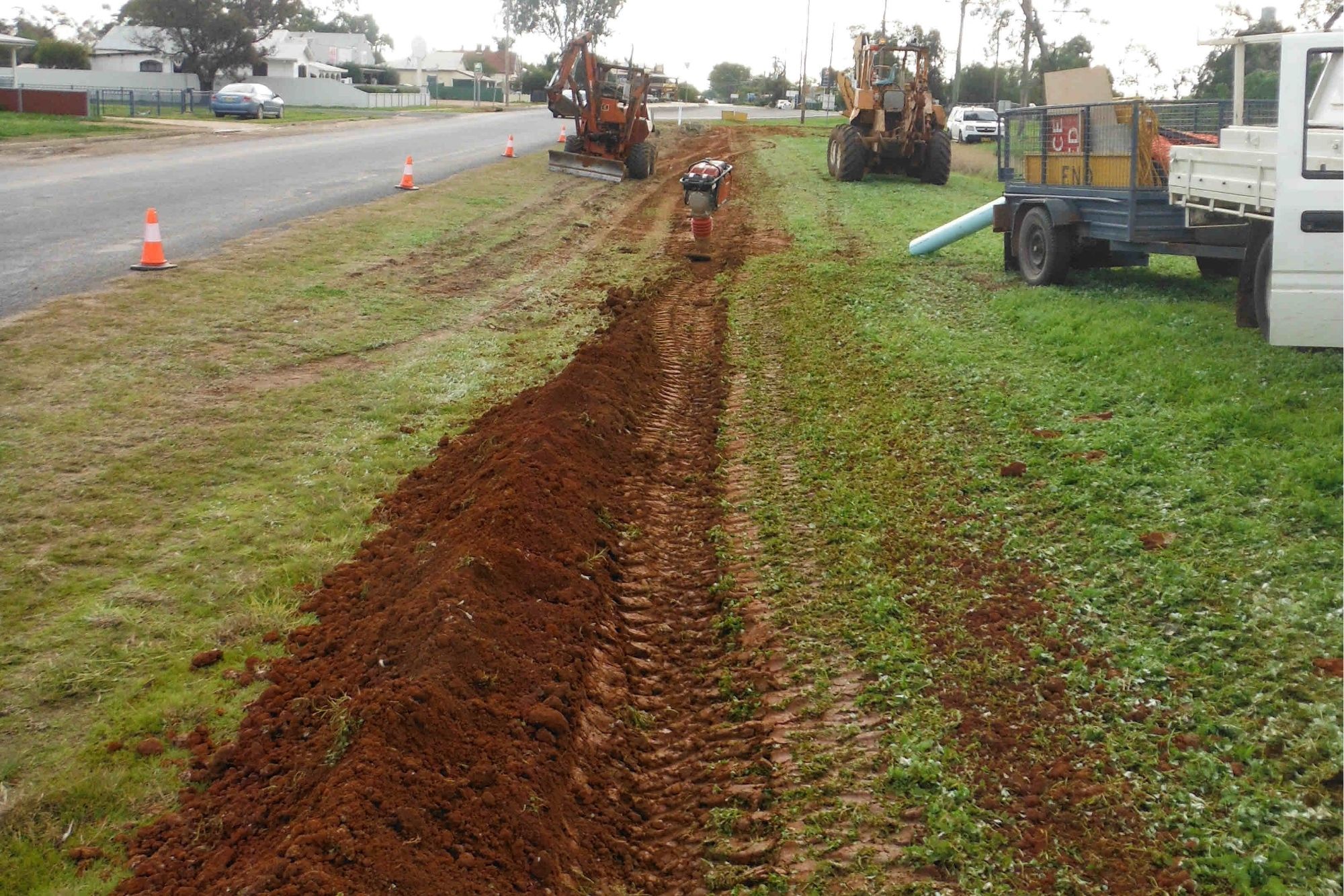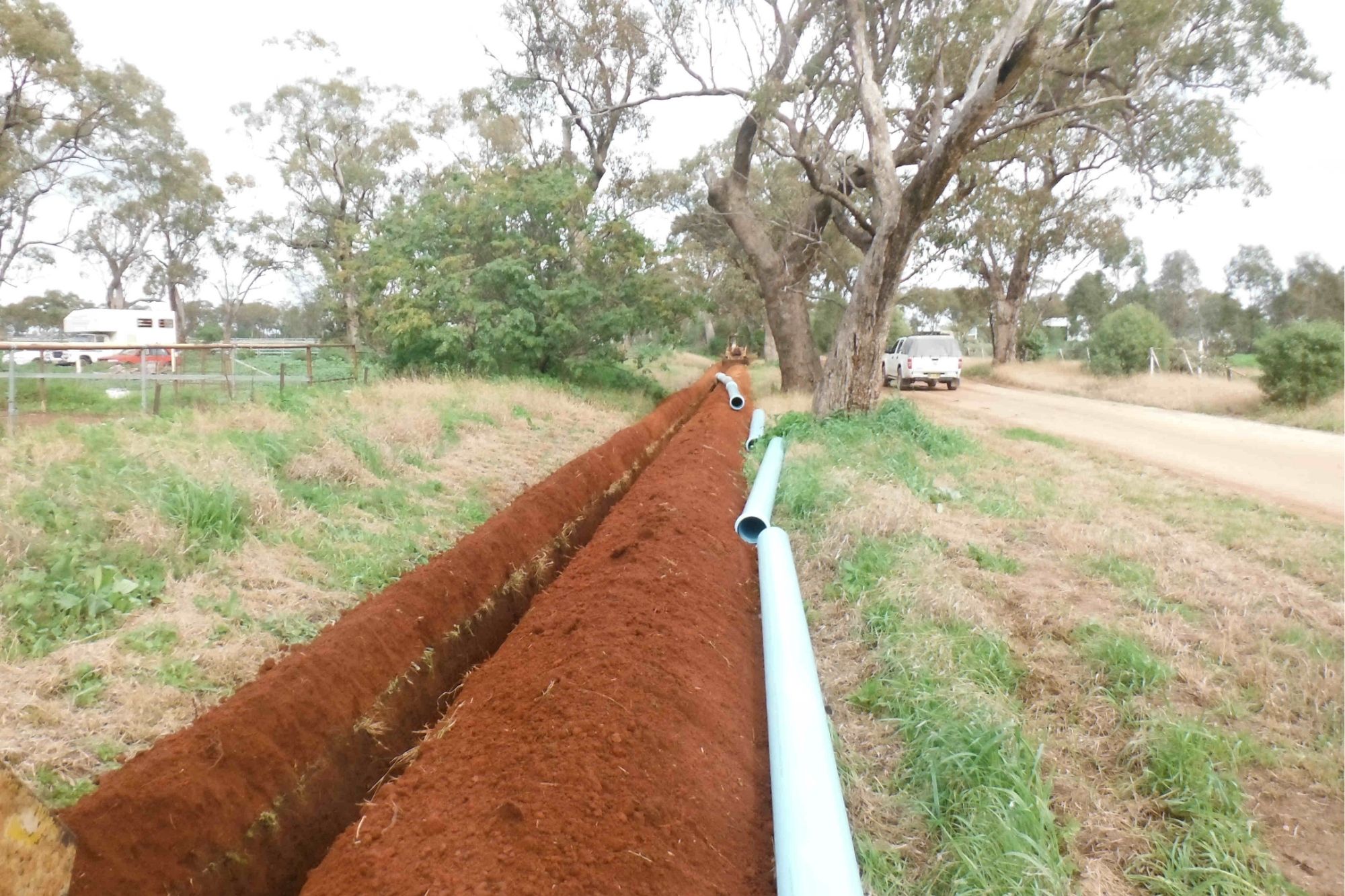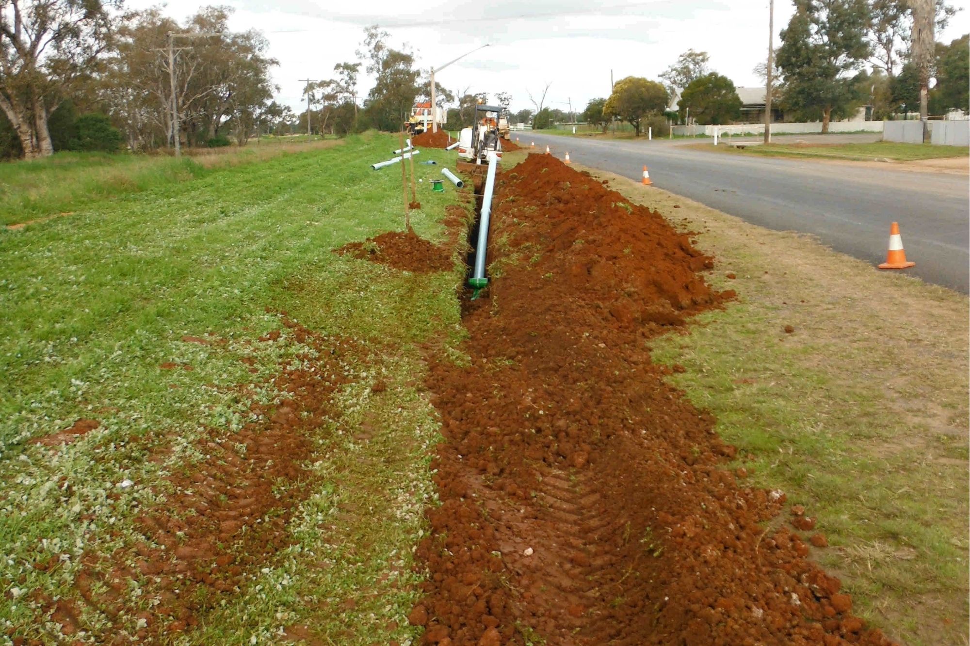 Warren Shire Council drilled a new water supply production bore 10 kilometres from Collie. The project involved the fit out of the new town bore and the connection into the existing storage reservoir at Collie adjacent to the Colie Hotel. The project included design supply and installation of bore pump associated electrical control and monitoring equipment and a 10-kilometre 100mm PVC Trunk main. There were a couple of major issues with this bore site that had to be addressed to be able supply the requested duty of 7l/s @ 152mrts into the Collie reservoir to maintain the required town supply.