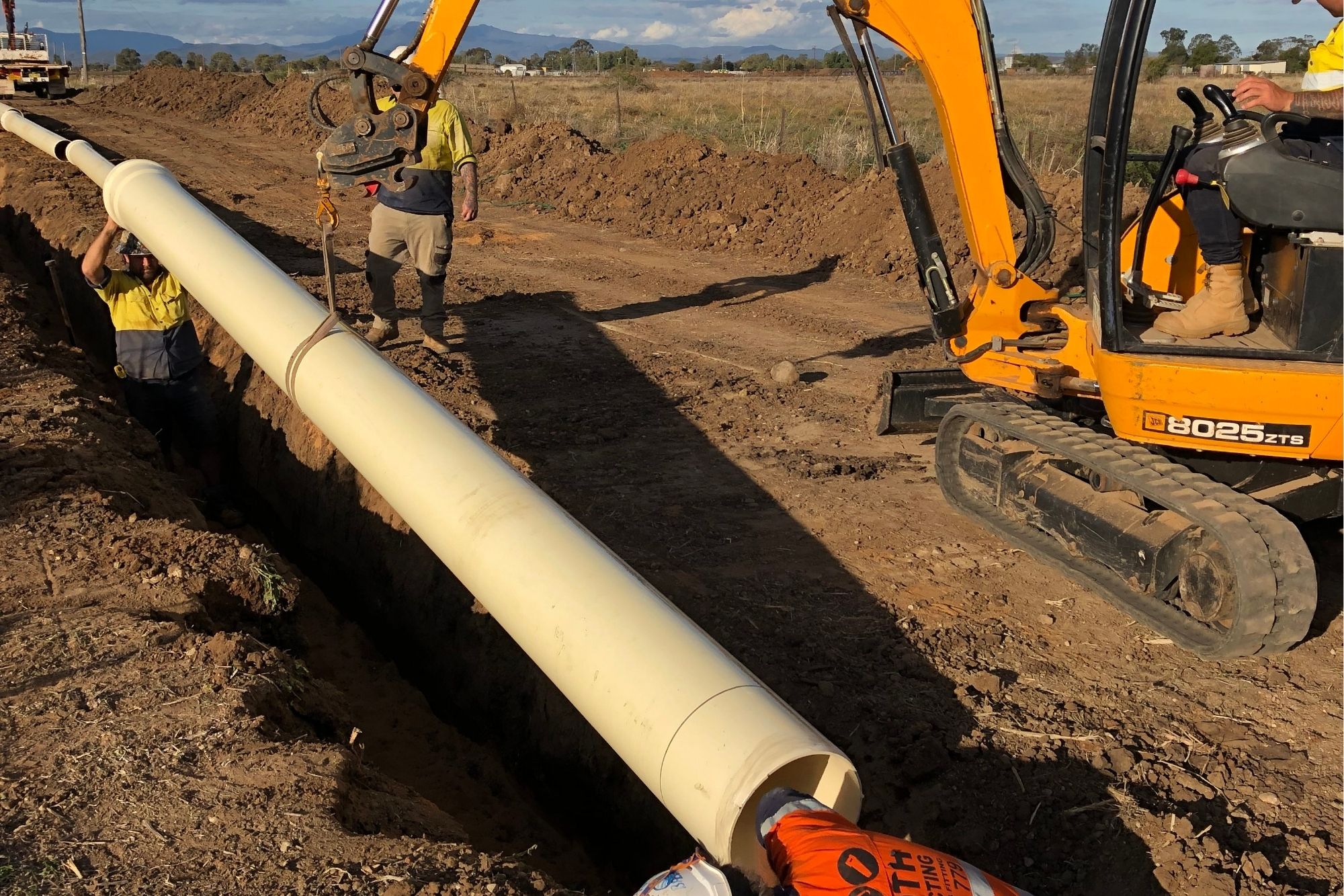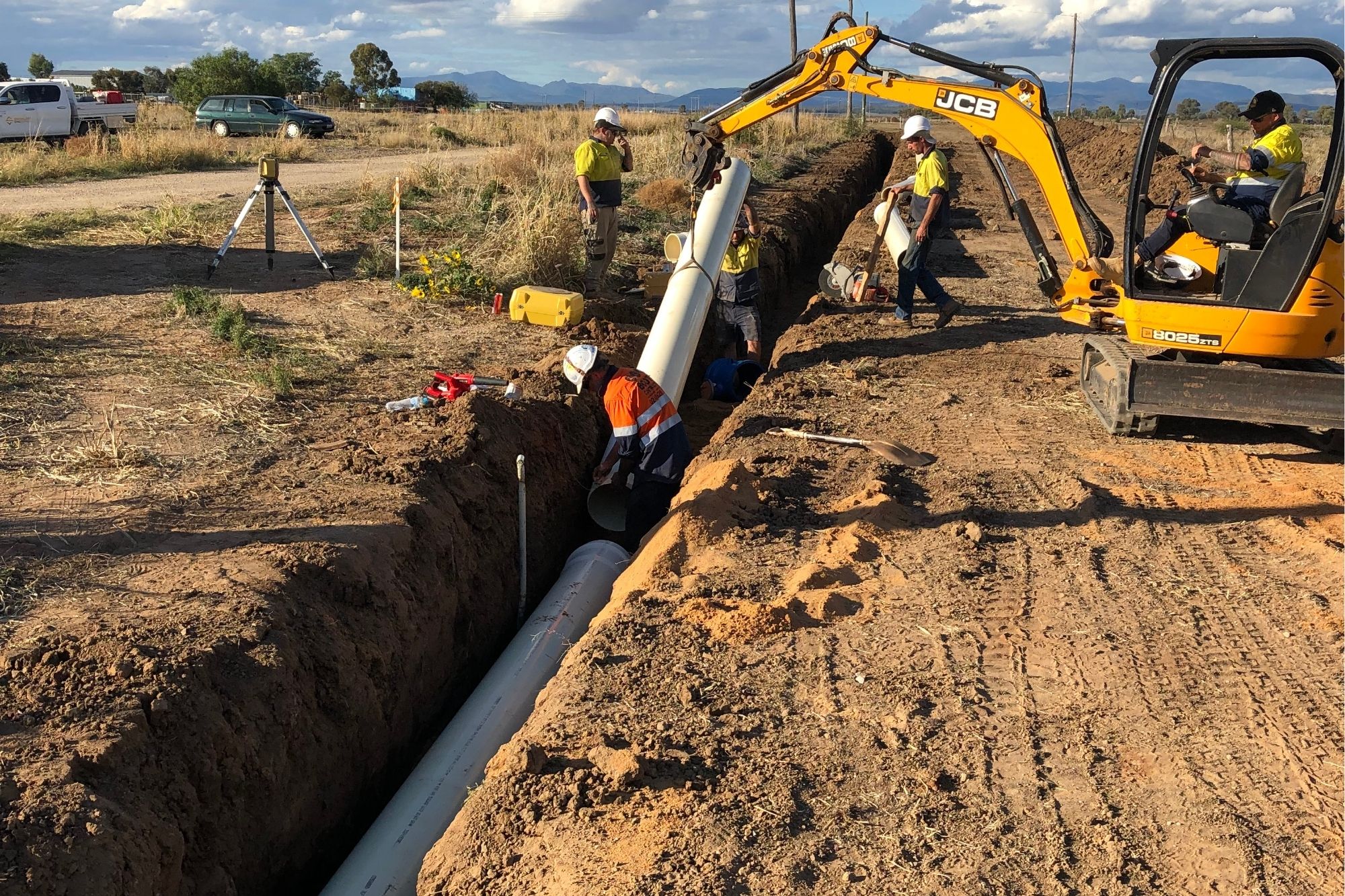 - Excavation and pipe laying in proximity to existing infrastructure.