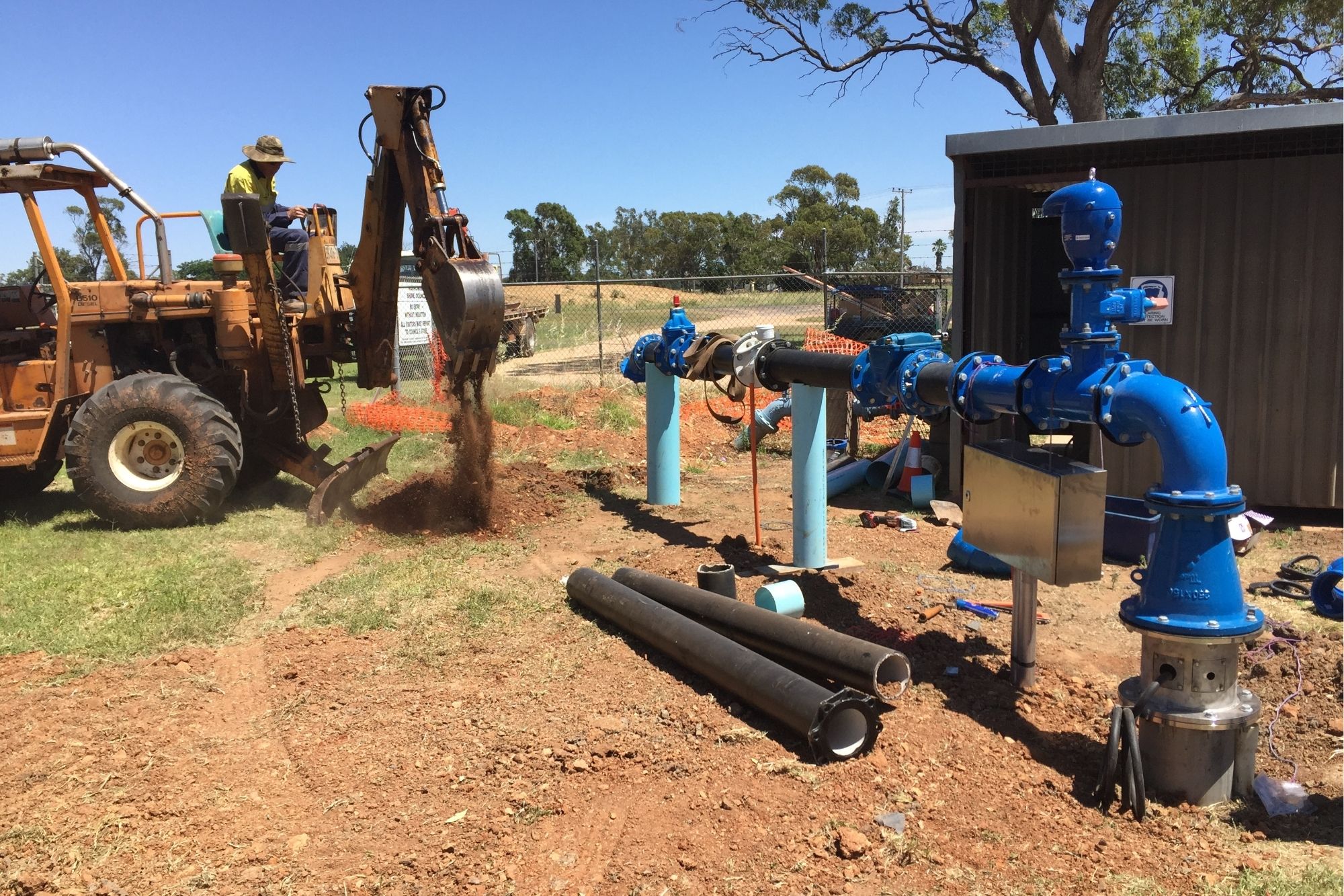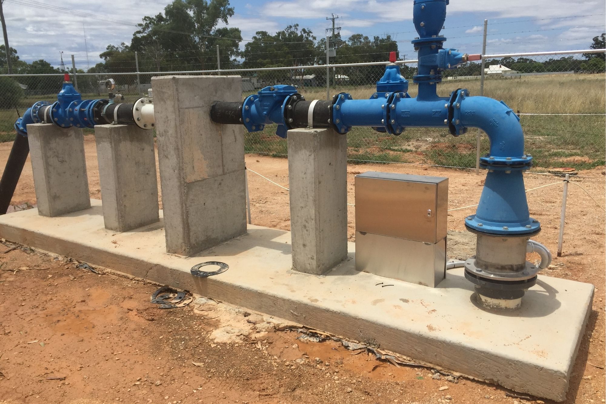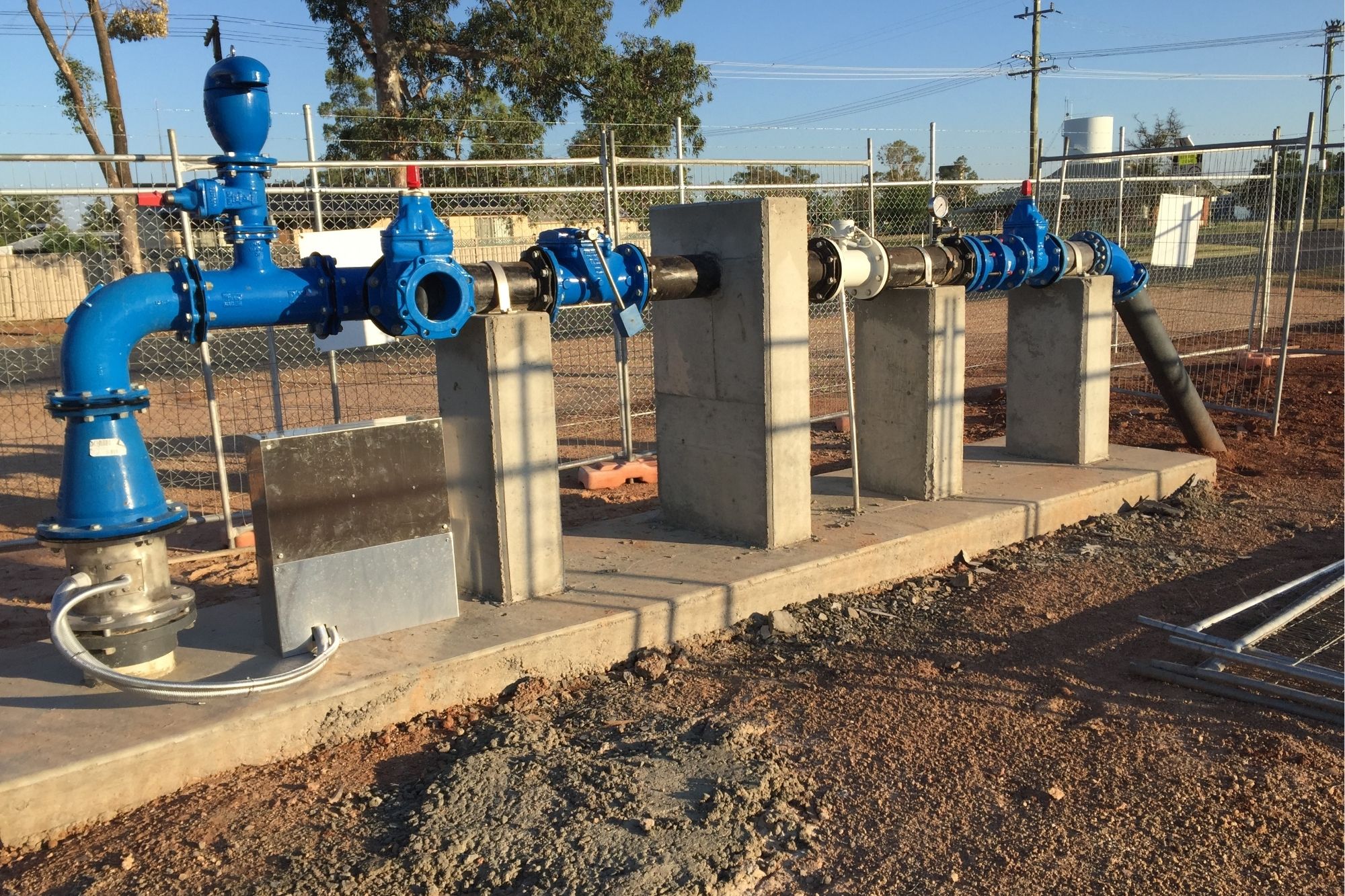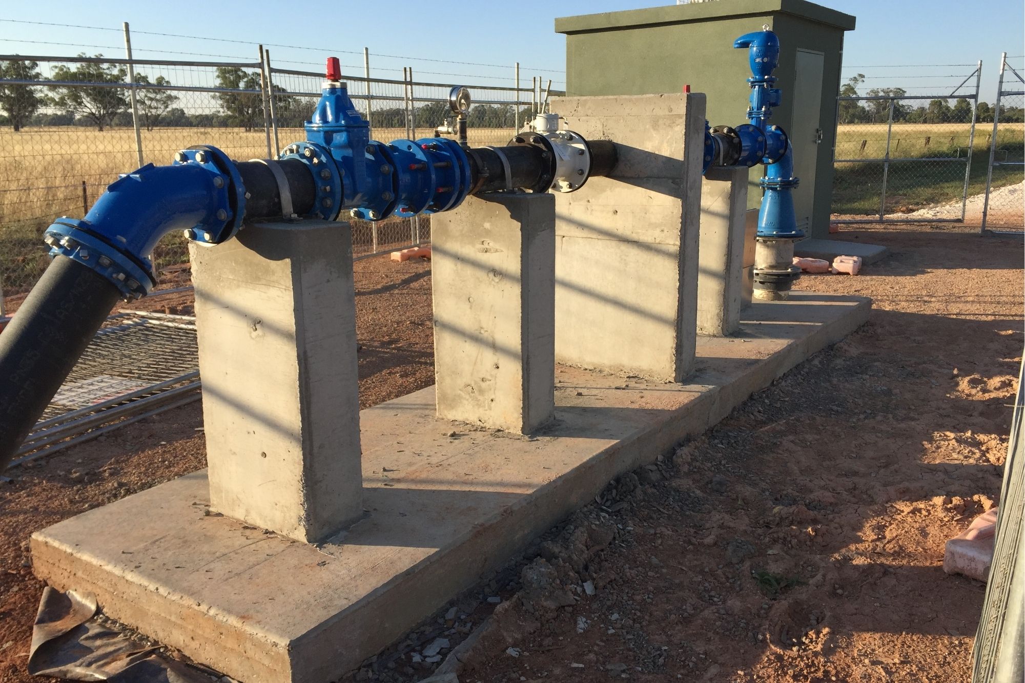 - Approximately 4,000m of 200m PVC PN16 Rising Mains from Bores to Reservoir