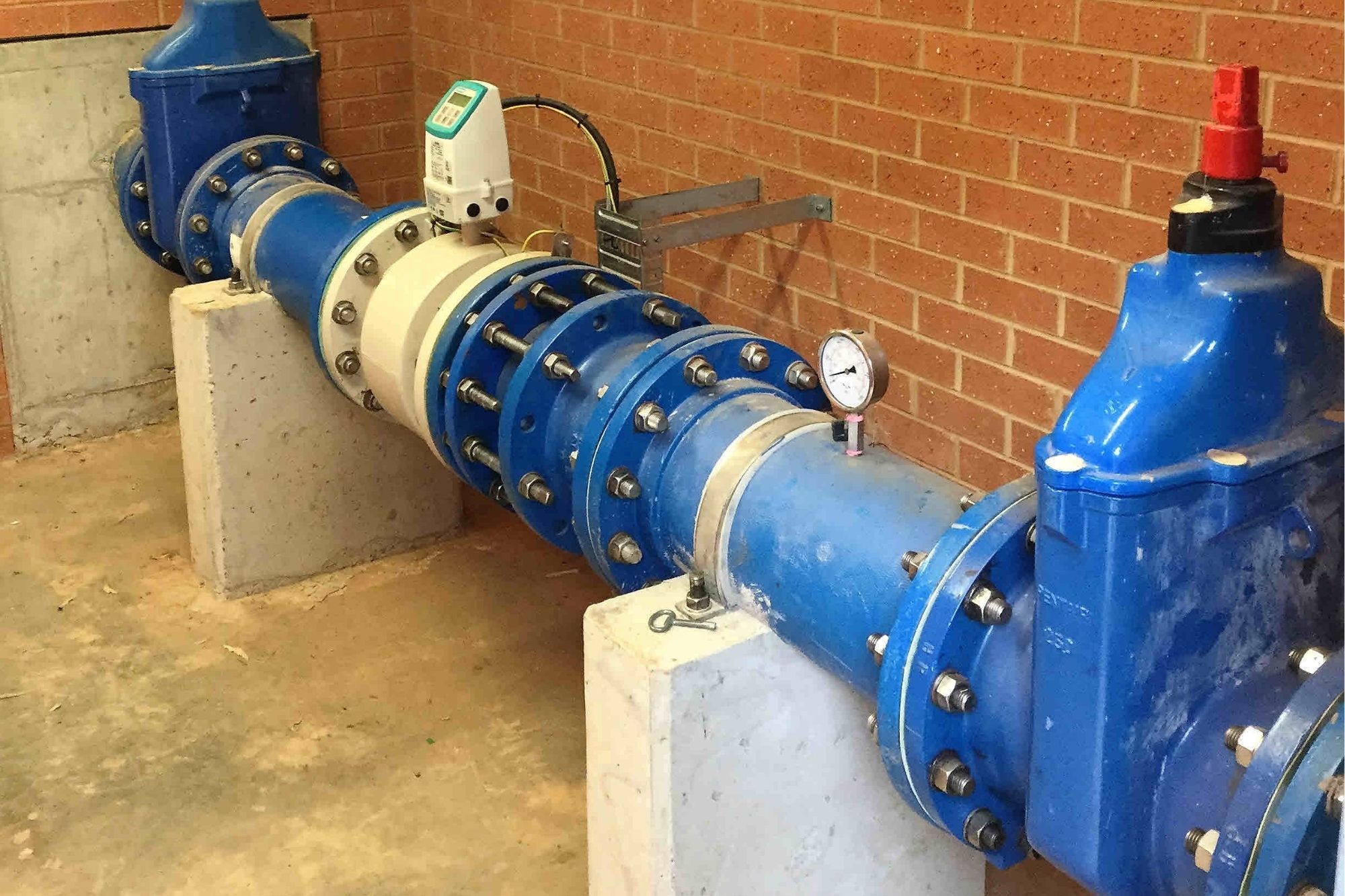 - Hydraulic Manifold arrangement at bore head including Water meter, Valves, and all associated connection fittings to link to the new 375mm DICL mainline.