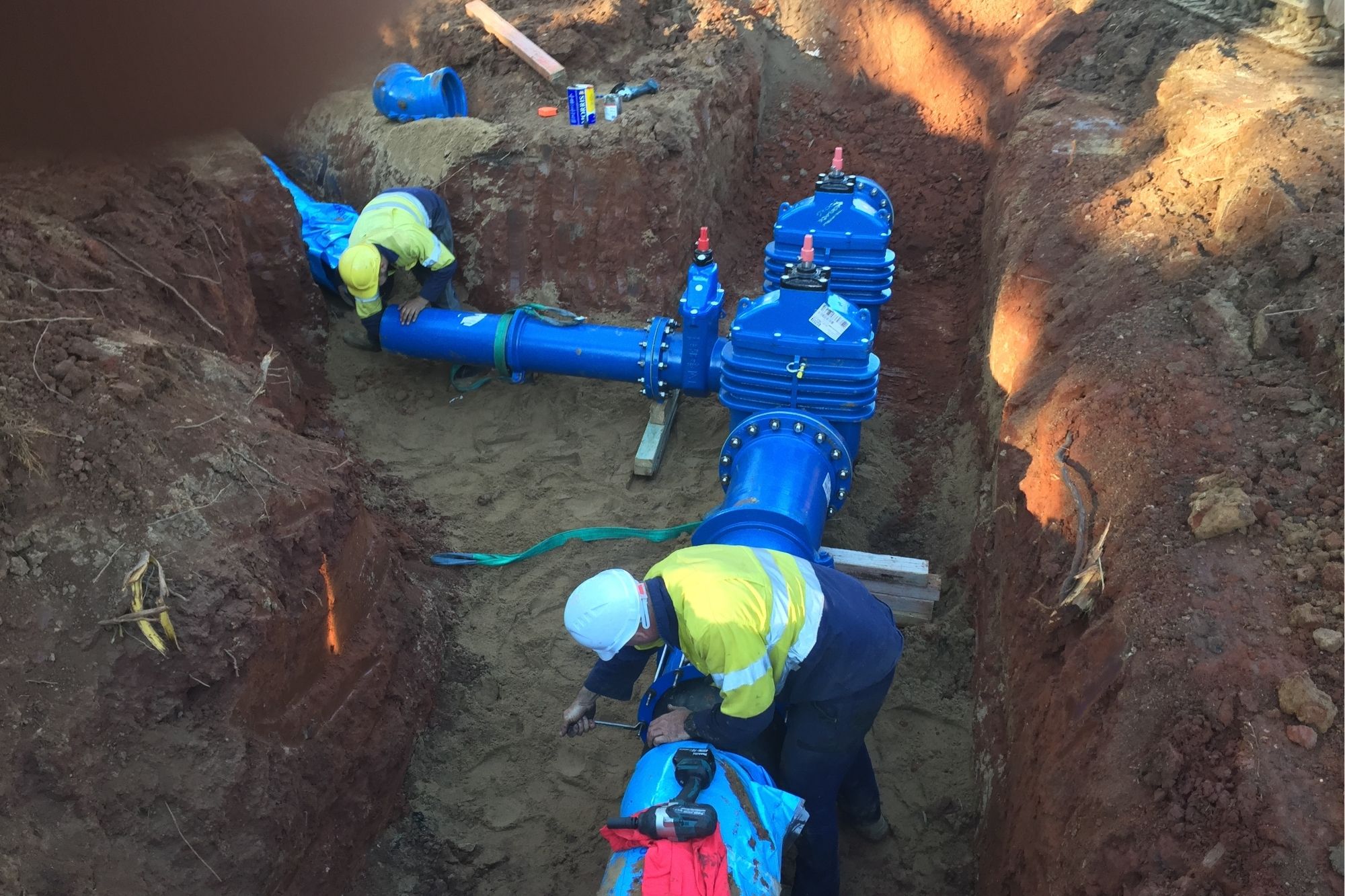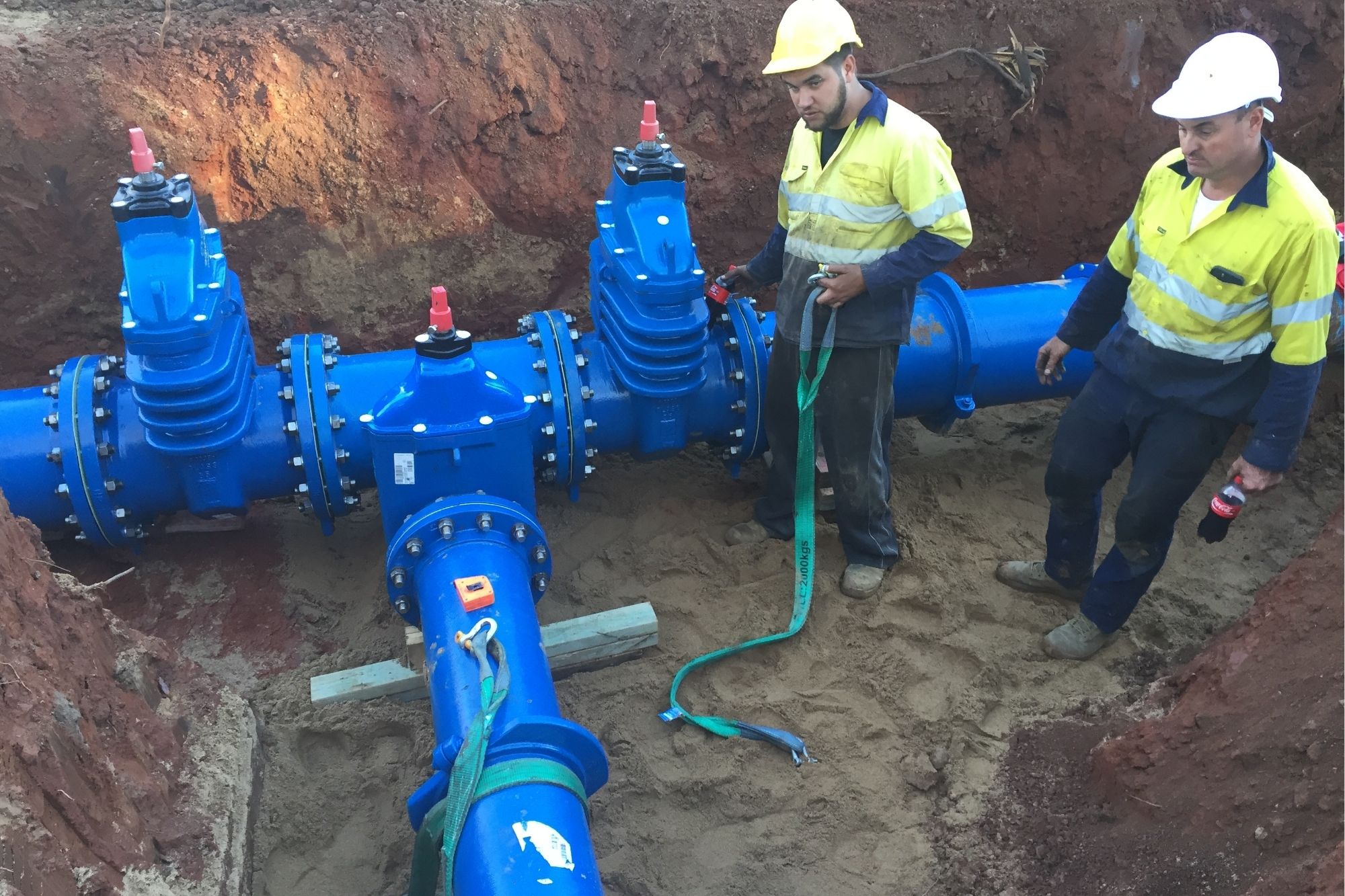 - Interconnect 375mm DICL main to existing 400mm AC including all isolating valves