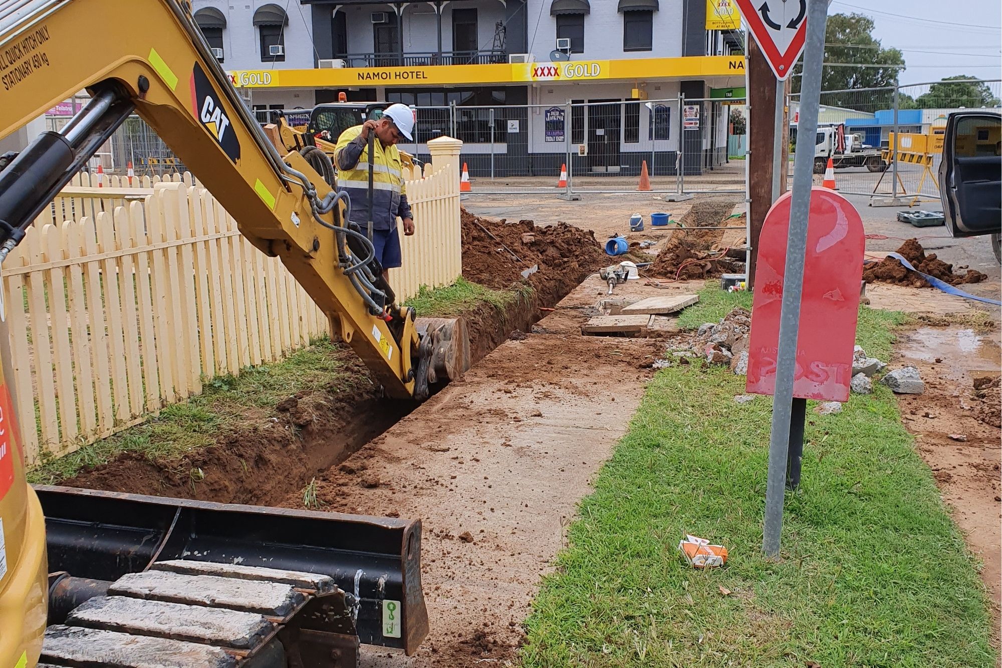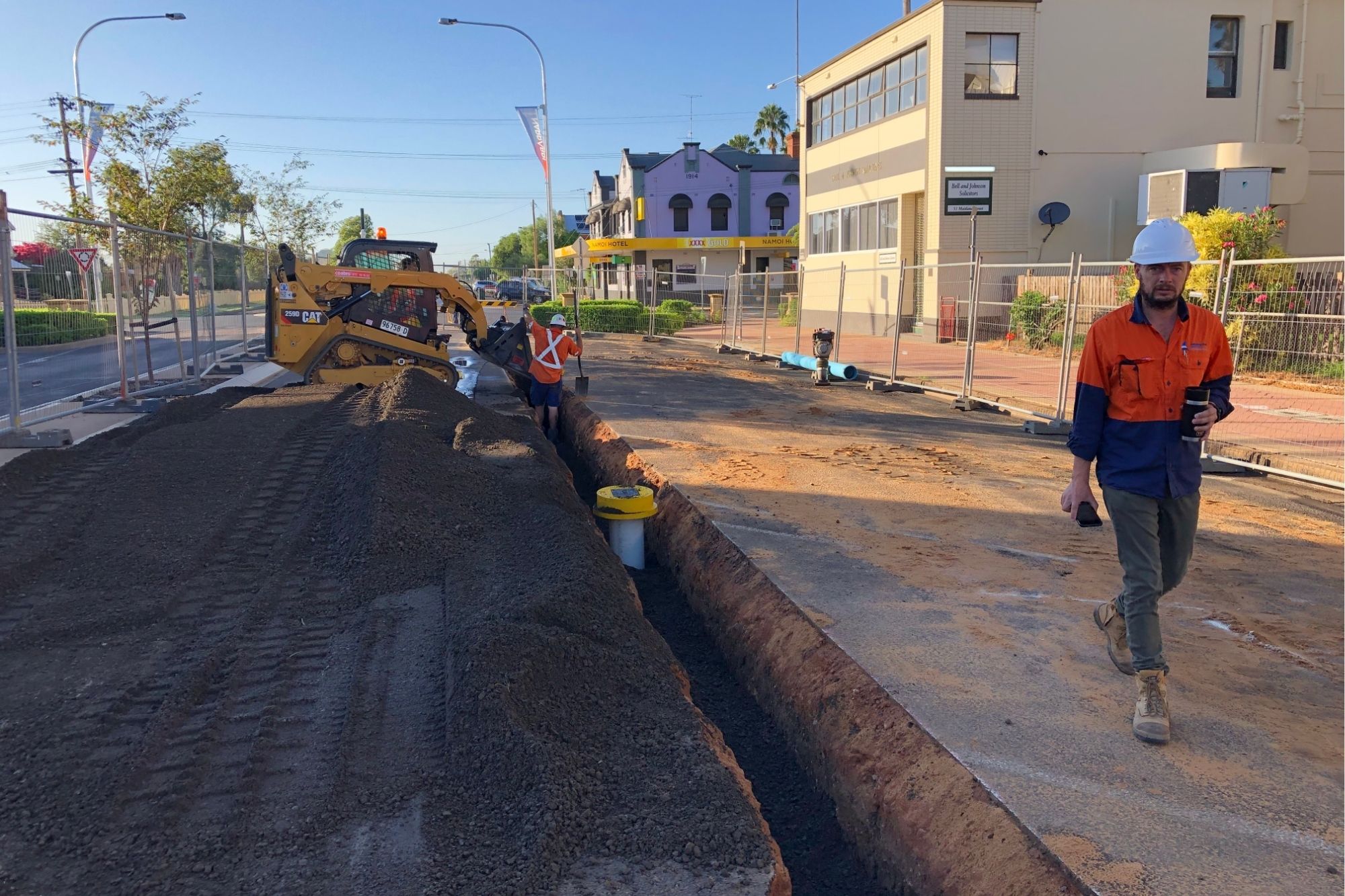 Narrabri Shire Council required a Construct only Potable pipeline upgrade for the main street in Narrabri, Maitland St. Council has identified the need to replace an existing pipeline along Maitland St as there are major leaking service outlets in the street and the street has been allocated to be resurfaced so replacement mains will need to installed prior to road upgrades. Replacement of water main between Killarney Street and Denison Street (1.2km) with new PVC PN 16 DN200 water main. Alignment to be approximately 5m from front of kerb (outside of travel lanes). New water main to be connected to existing AC water main north of Killarney Street and South of Denison Street. There are 6 branch offtake connections on the existing main and 62 existing metered service lines along the alignment, all existing service connections to pipelines are to be kept in service throughout the works and transferred to the proposed new pipeline as part of the commissioning of the works.