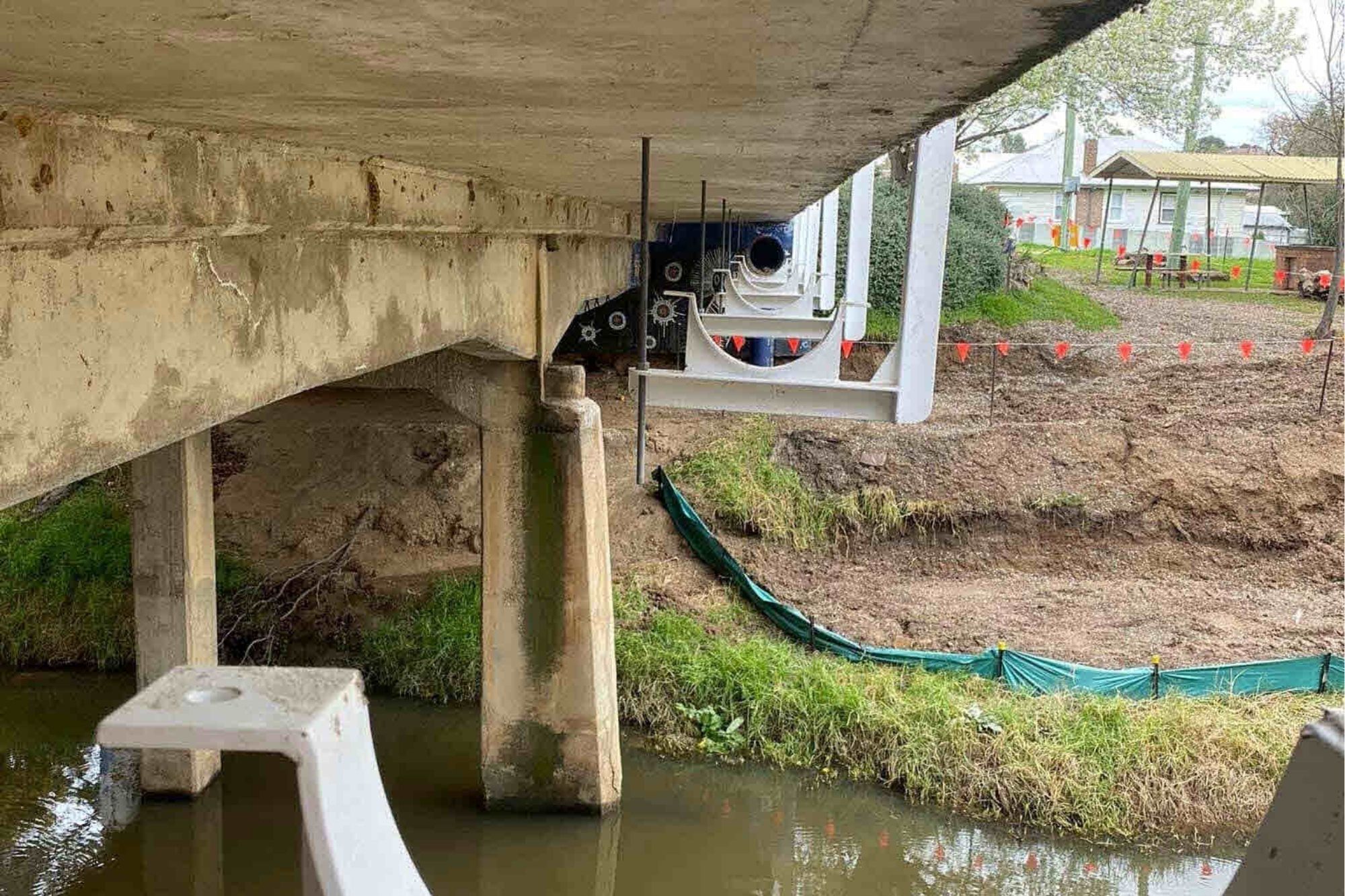 Water Reticulation Infrastructure, Remote & Regional Works – Road & Rail Under Boring, Night Works – Under slung pipe bridge crossing