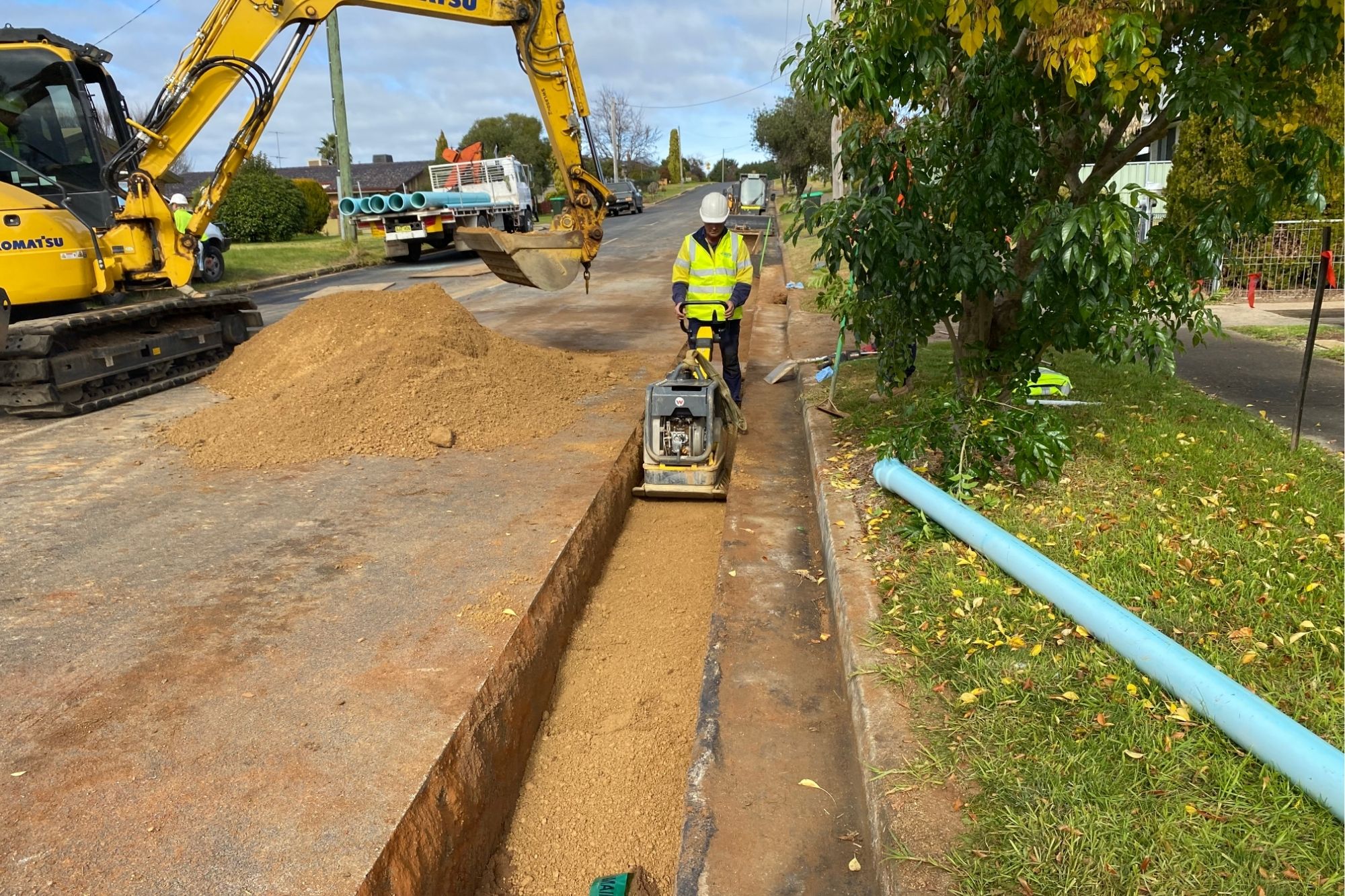 Cowra Shire Council required a Design and Construct Potable pipeline upgrade for exiting mains. Council has identified the need to replace an existing pipeline along the Comerford St and Lachlan St the existing fibro main is well past its life with continual mains breaks and needs urgent replacement. There are connections to existing rising mains, and 15 existing metered service lines along the alignment including connection to Weeroona Retirement Village, mainline line connections crossing Redfern St (RMS Road) will require under boring. All pipelines are to be kept in service throughout the works and transferred to the proposed new pipeline as part of the commissioning of the works.